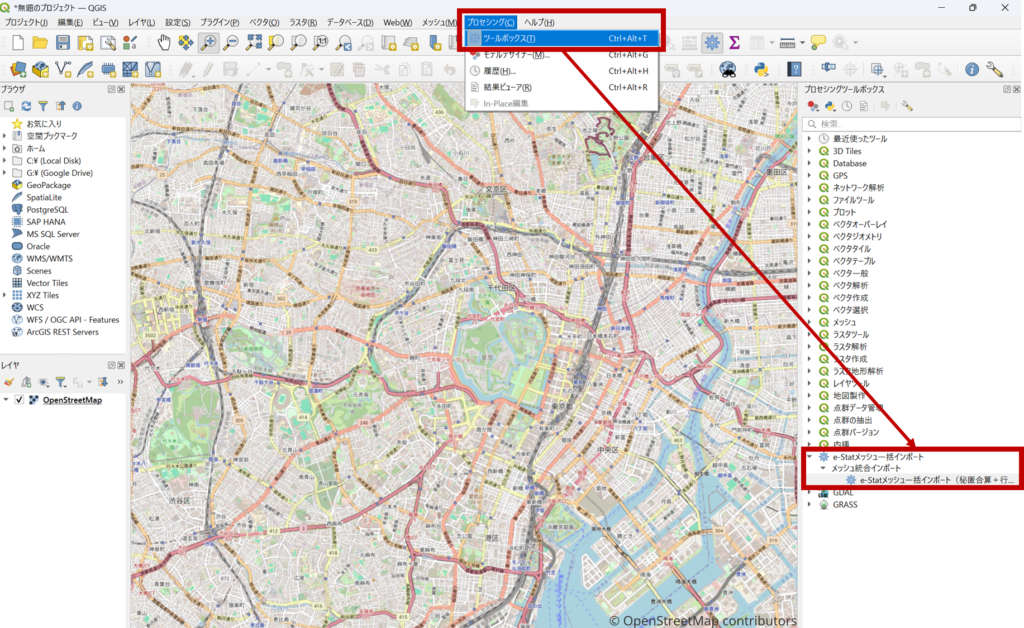 本プラグインは「プロセッシング」>「ツールボックス」から起動します。