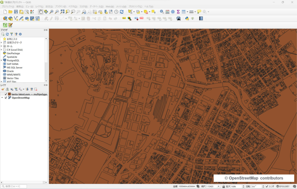 QGISで .osm.pbf ファイルを表示
