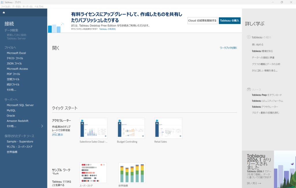 Tableau Desktop Free Editionの新しい無料エディション(提供形態)で、2026年4月に提供が開始されました。